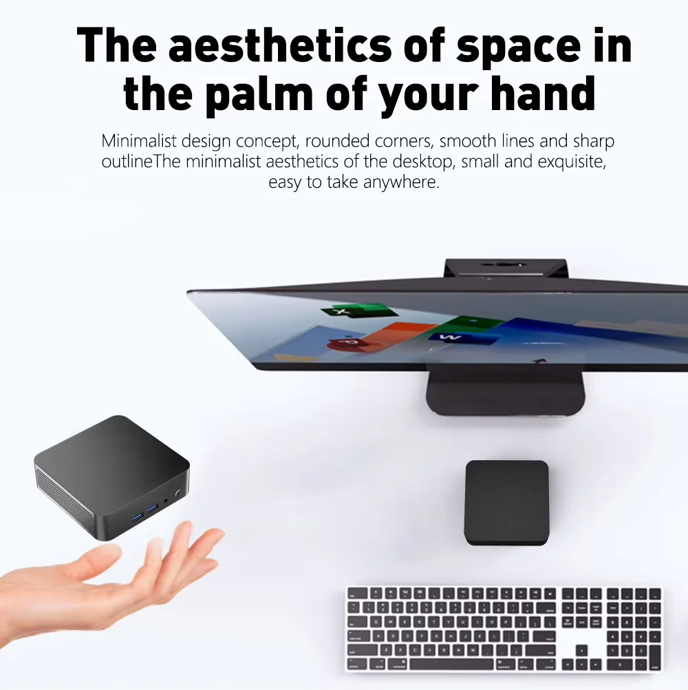 – This Intel mini pc measures 11.2 x 11.2 x 3.6cm and weighs about 400g, lightweight and portable, so it’s easy to put it in the bag at any time.