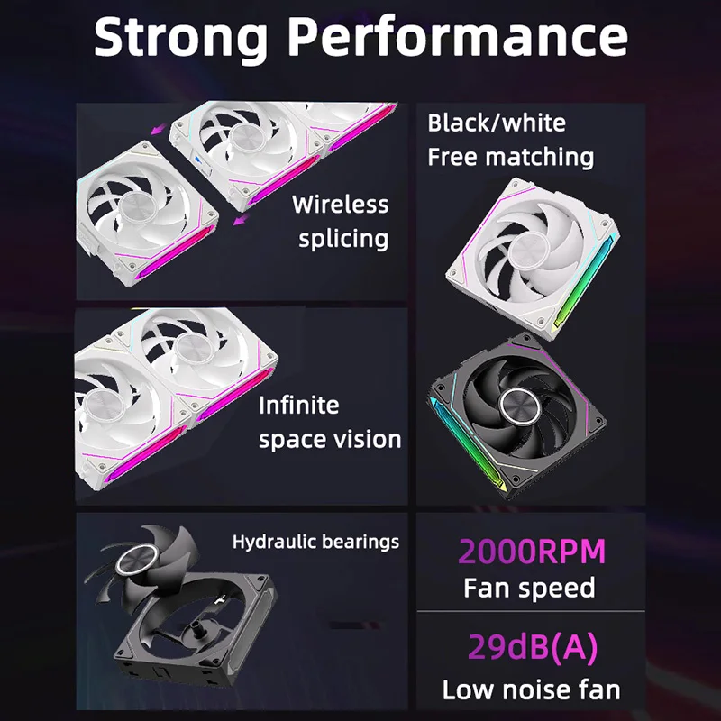 Coolcirc DL-2 120mm ARGB Cooling Fan Modular Wireless Stackable Splicing 800-2000RPM PWM Silent for Gaming PC Case Water Cooler