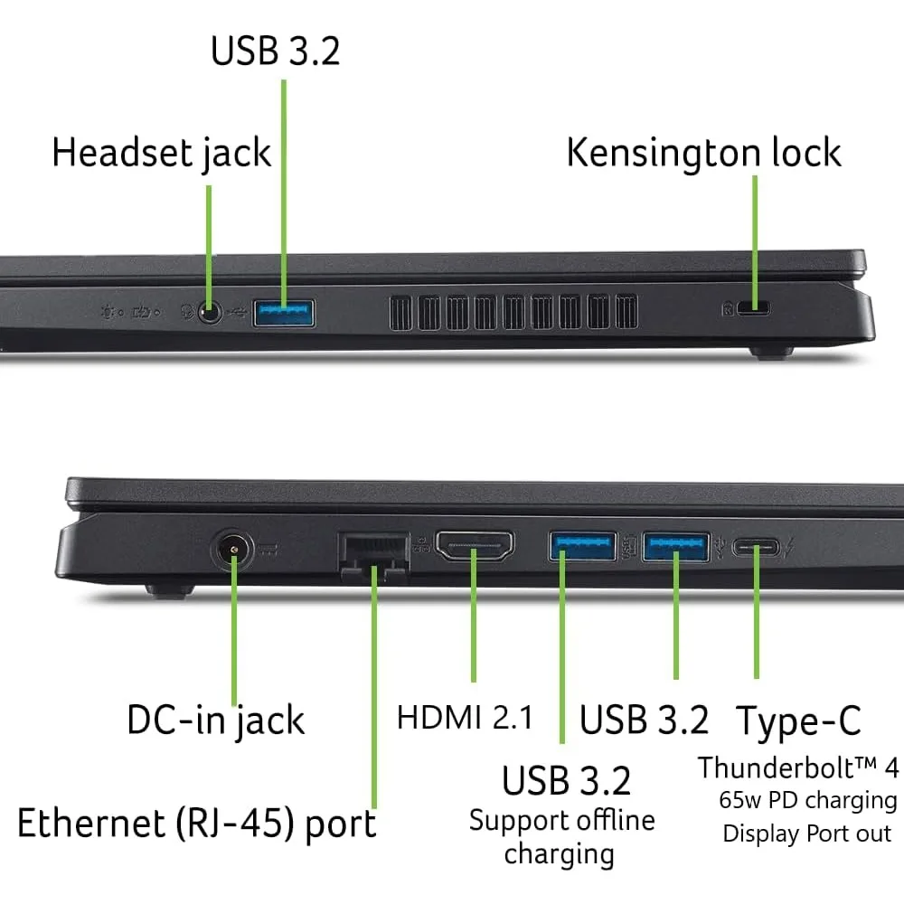 Thunderbolt 4: Equipped with a high-performance Thunderbolt 4 port, experience ultimate versatility with high-speed charging, bidirectional data transfer, and video output through a single interface.Stay Connected: Your gaming sanctuary goes wherever you are. Relax on the couch with fast and stable Wi-Fi 6 connectivity. At a gaming cafe? Dominate online with Gigabit Ethernet. Wherever you play, Nitro V 15 keeps you in control.