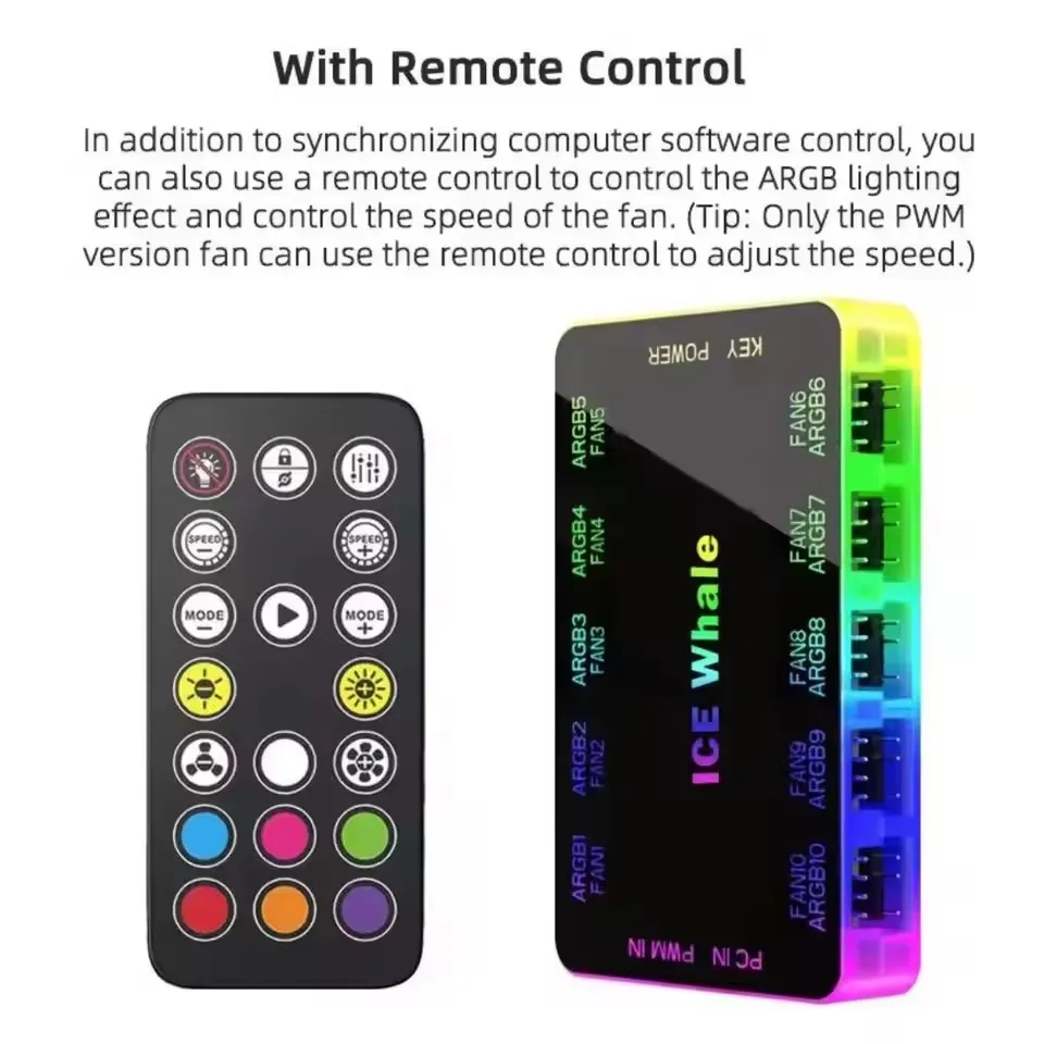ICE Whale C10 1 to 10 PWM&ARGB Case Fan Hub SATA Power Interface Splitter 4Pin PWM 3Pin Addressable ARGB With Remote control