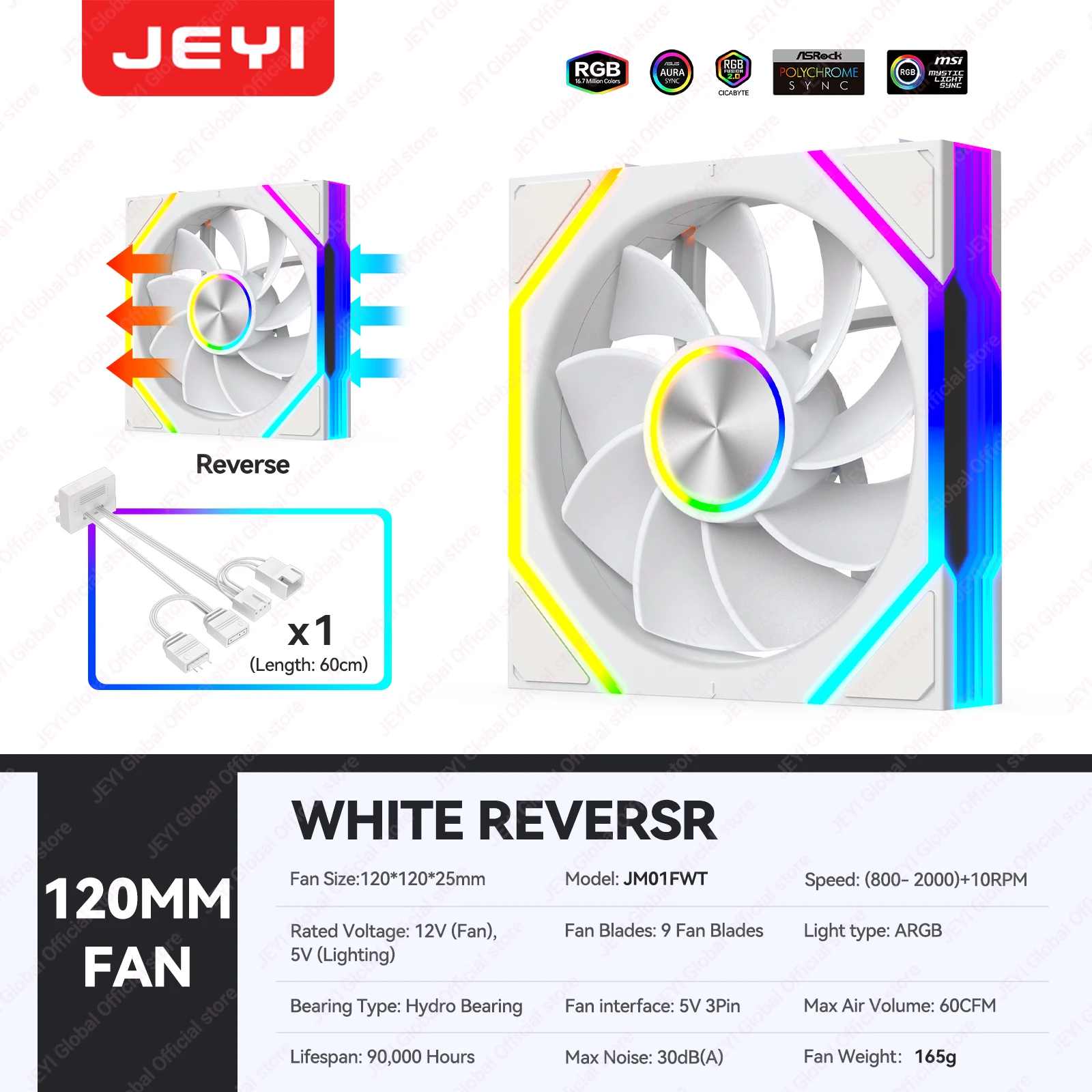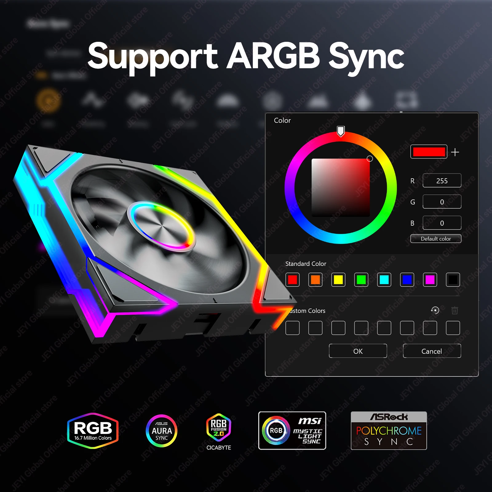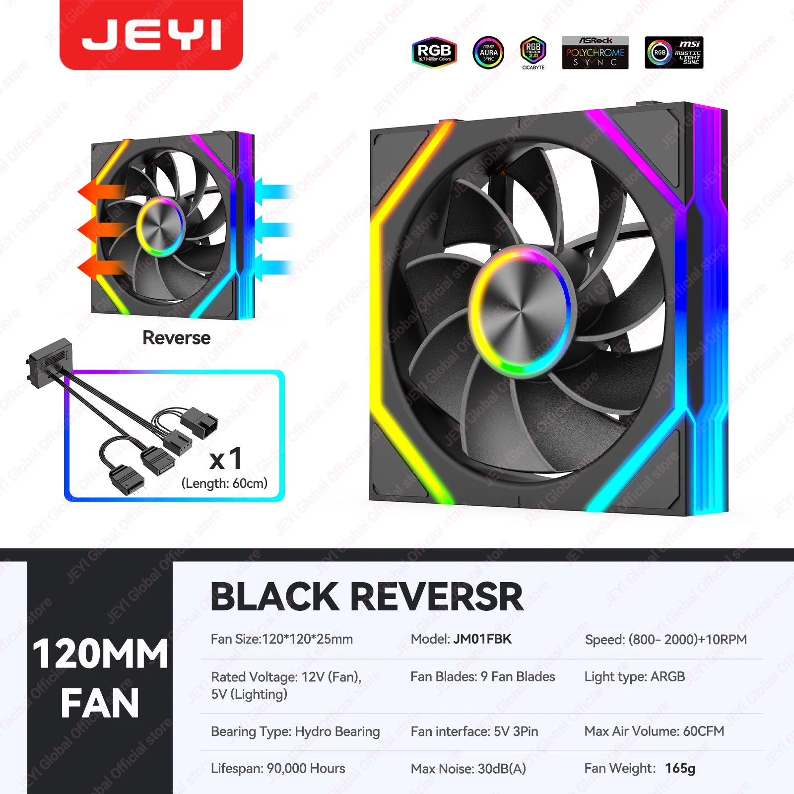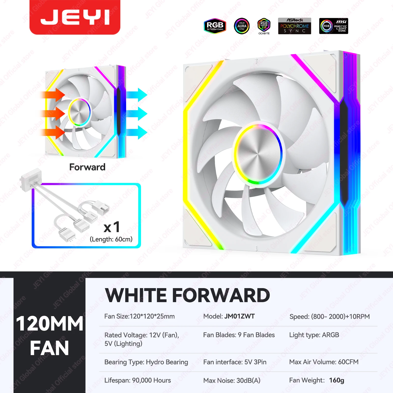 JEYI ARGB Chassis PC Fan Hydro Bearing Fan 30dB(A) 12CM CooI Fan 5V3Pin PWM Modular Wireless Splicing Forward/Reverse Blade Fan