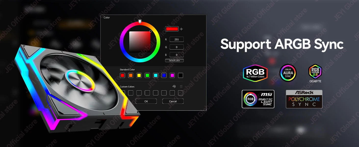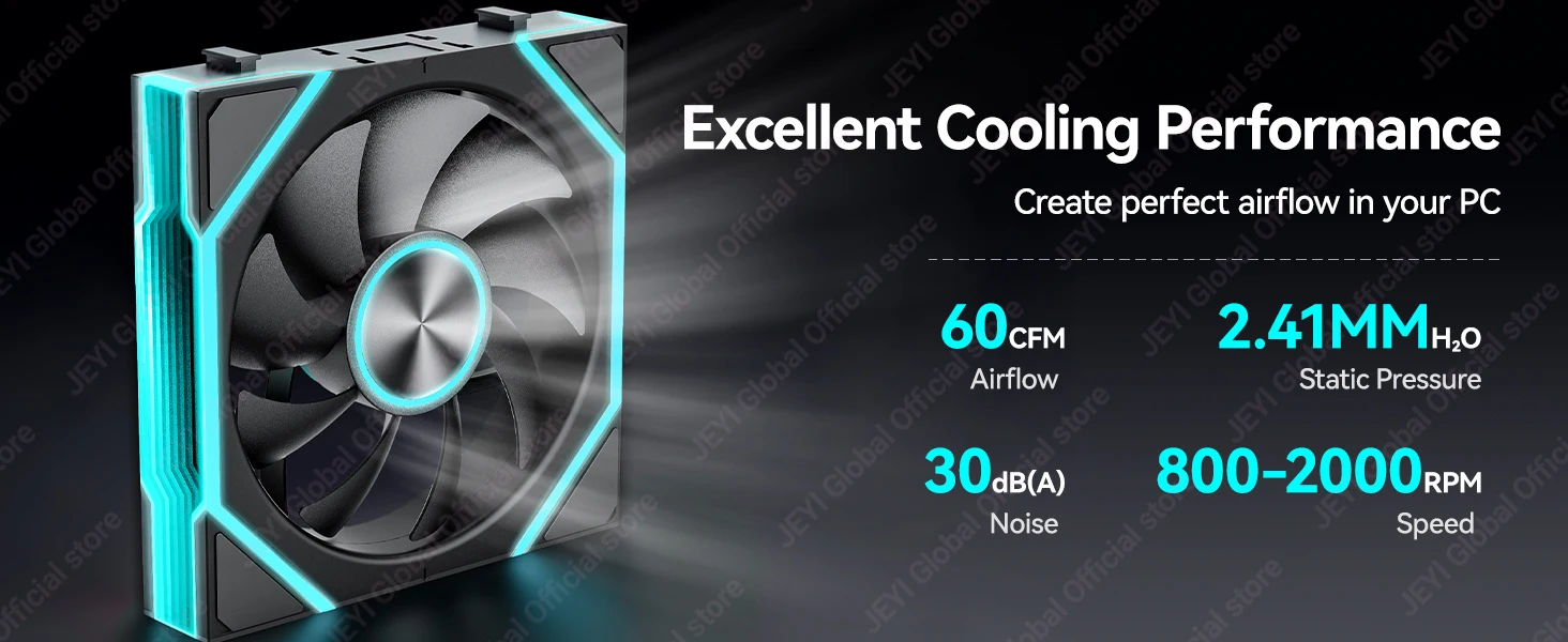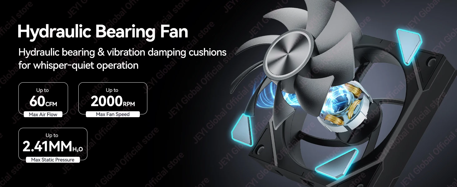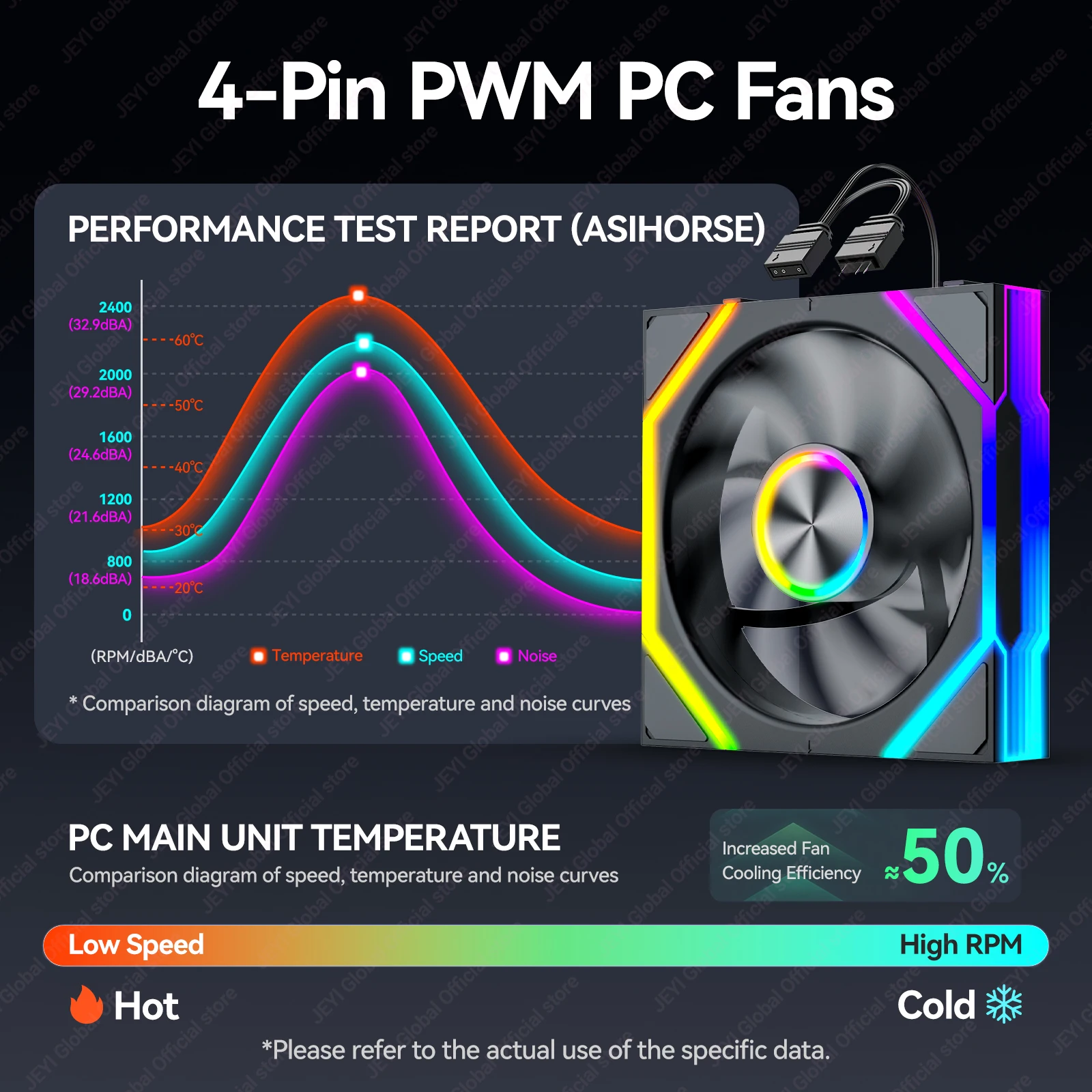 JEYI ARGB Chassis PC Fan Hydro Bearing Fan 30dB(A) 12CM CooI Fan 5V3Pin PWM Modular Wireless Splicing Forward/Reverse Blade Fan