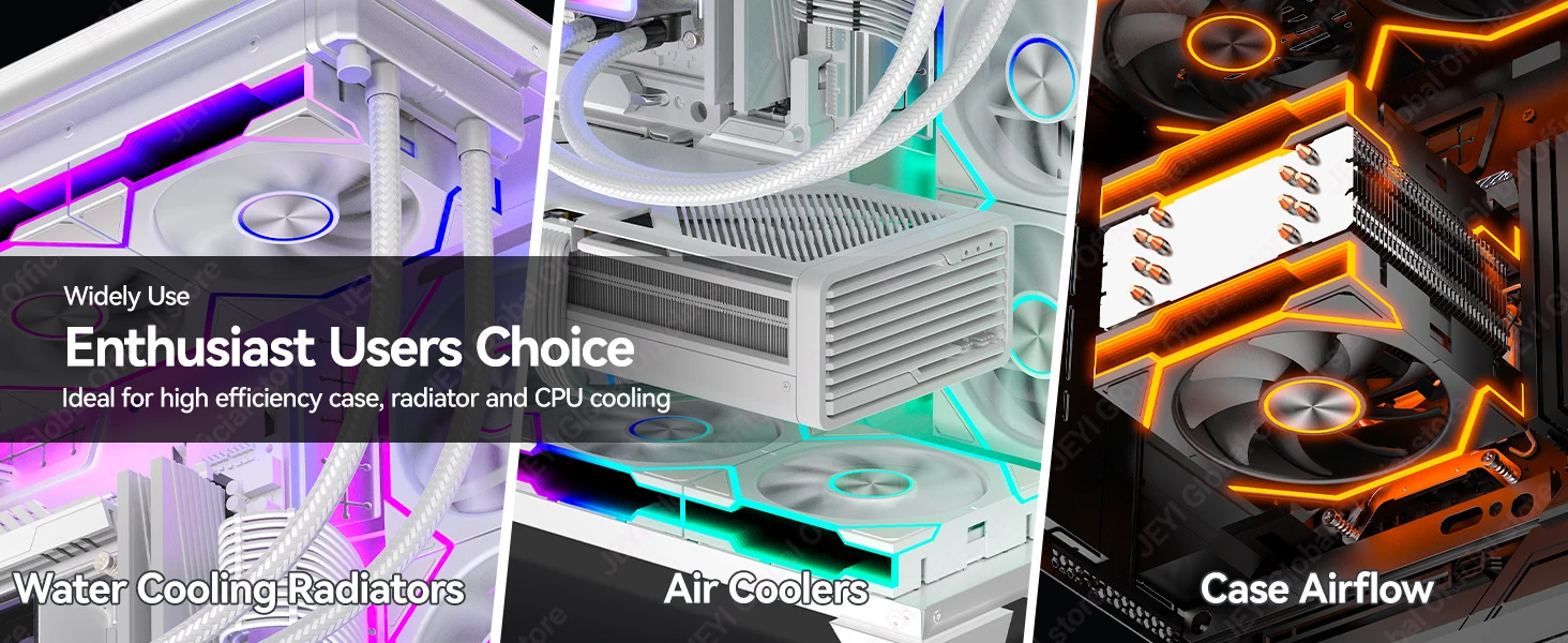 For installation on radiators or CPU air coolers, please prepare compatible mounting screws and tools separately. Not included.