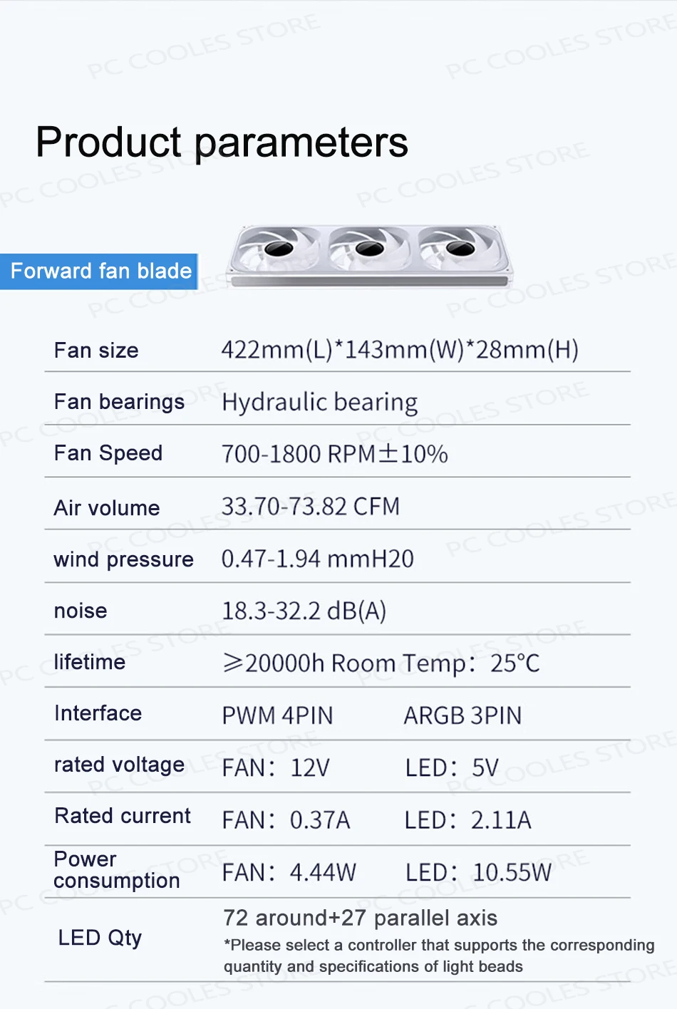 Fan size: 422mm (L) * 143mm (W) * 28mm (H)