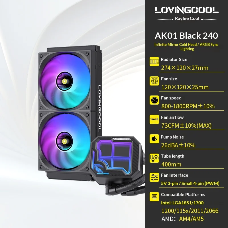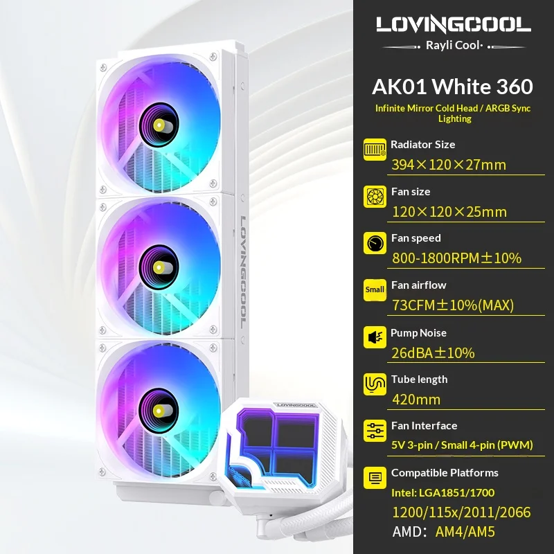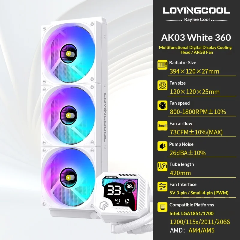 LOVINGCOOL AK water cooler 240mm 360mm broken code screen dynamic digital display liquid cooler ARGB Abyss Mirror Cold radiator