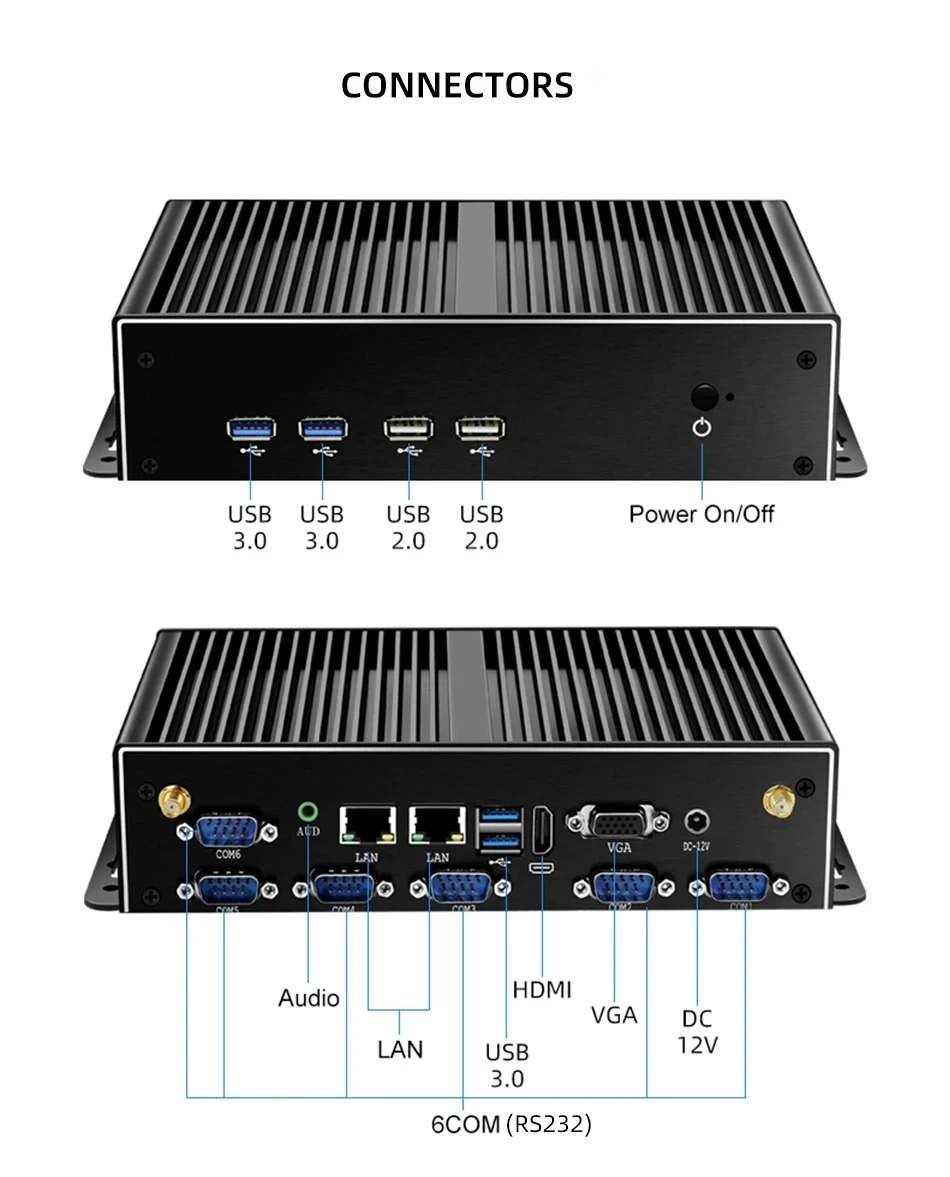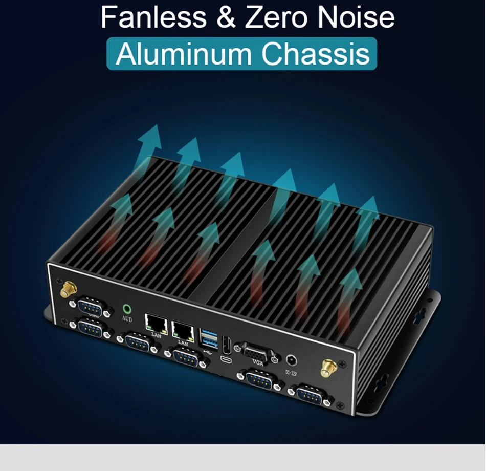 Mini Industrial PC Fanless Dual LAN 6*COM 4G LTE Core i5 4200U i7 4500U J1900 HD WiFi 6*RS232 RS485 Windows 11 Linux Computer