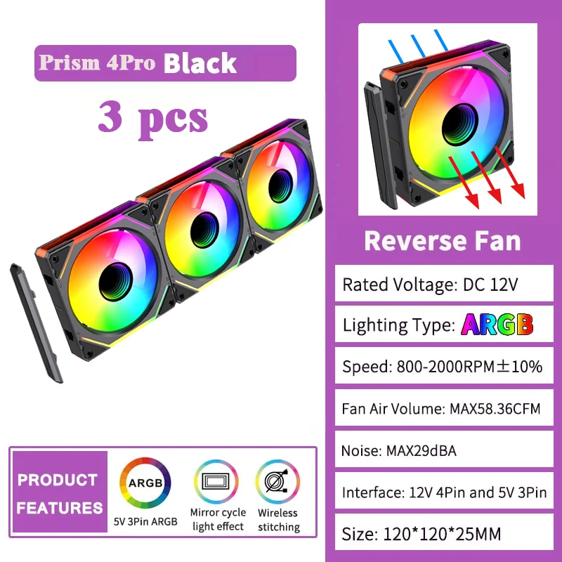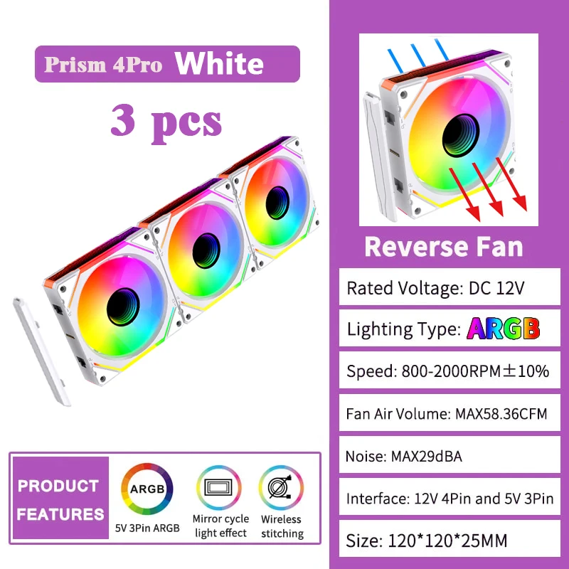 Prism 4 Pro Building Blocks Modular Case Fan ARGB Mirror Cycle Light Effect 800-2000RPM PWM Water Cooling 120mm Cooler Fan