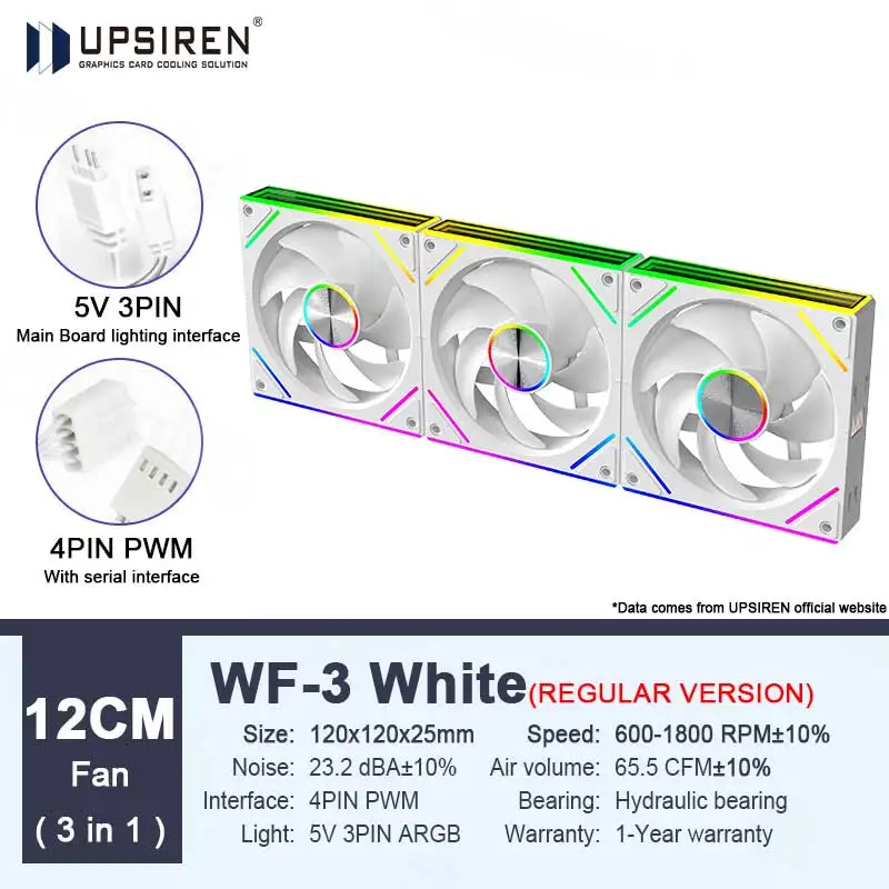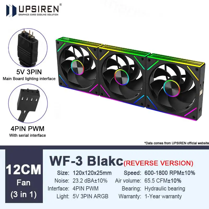 UPSIREN WF-3 120mm Wire-free splicing case fan motherboard light synchronization 4PIN PWM Center axis CD texture design 12CM