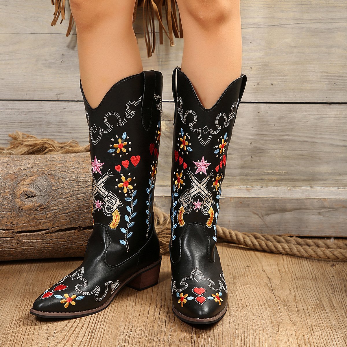 1 review for Women’s Long Embroidered Chunky Heel High Leg Boot